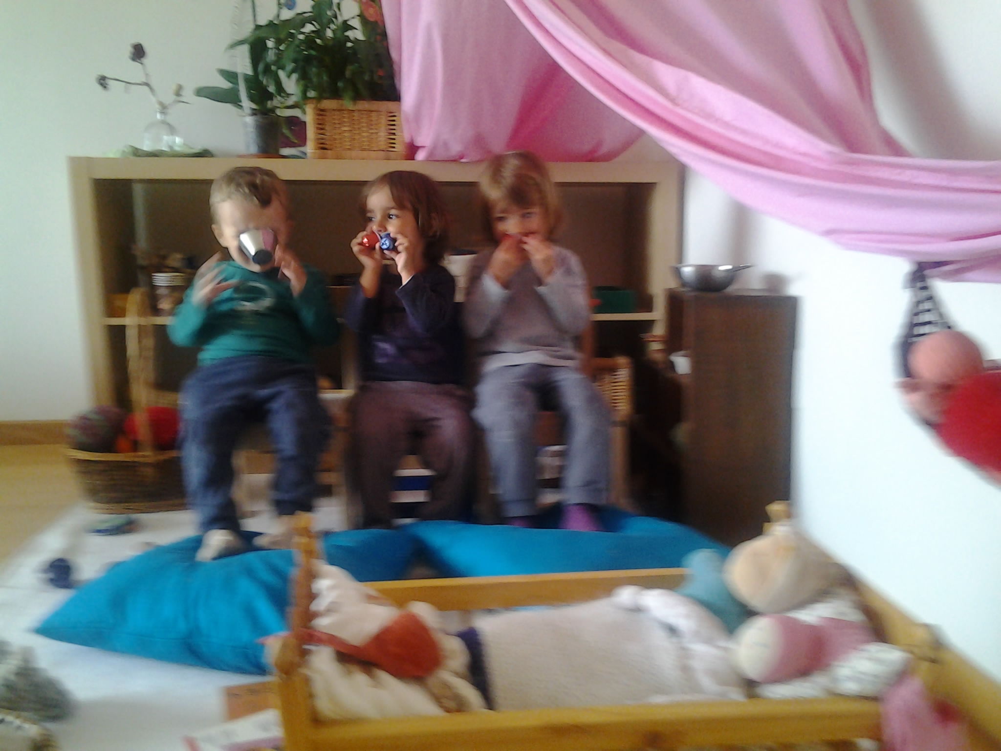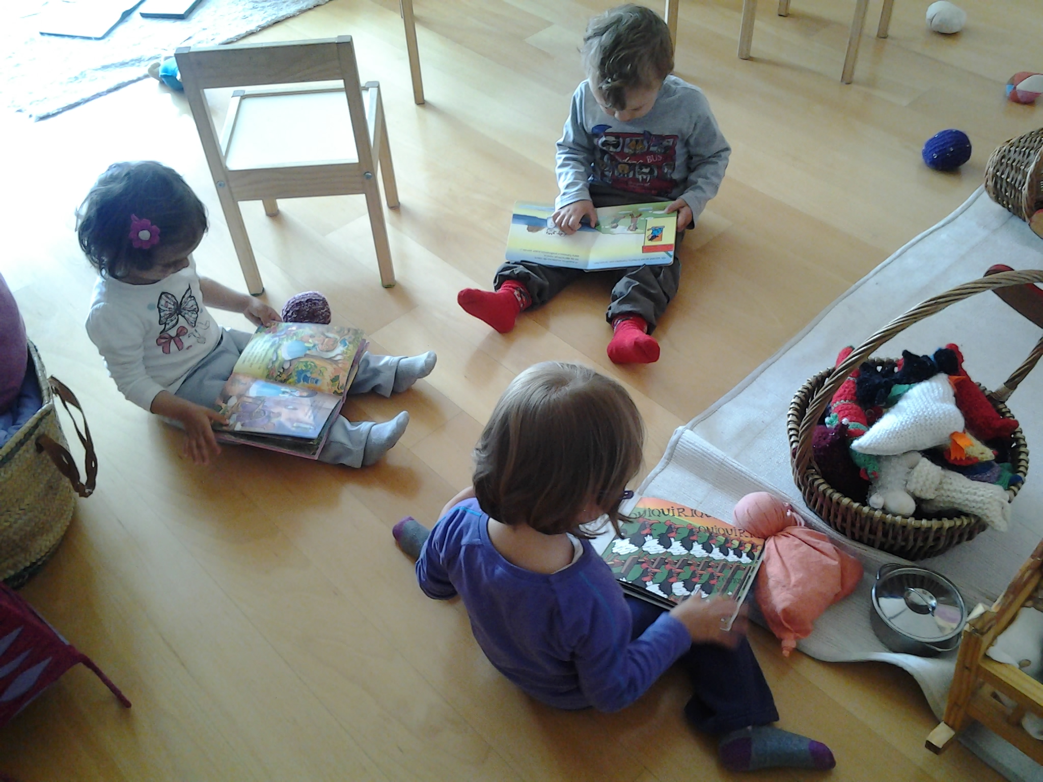 Un espacio de juego creado para los niños, quienes sienten que la sala que los recibe por las mañanas es lo más parecido a su propio hogar. Allí las canastas con juguetes de madera y con objetos de la naturaleza son la invitación para que ellos creen o construyan con su propia imaginación el mundo que desean. Sedas de colores apropiadas para disfrazarse o crear animales o muñecos a su medida, la mesa con pastas y acuarelas para dibujar junto con las maestras, les permiten desarrollar de manera artística lo que su alma infantil les invita a expresar. La “gran familia” compuesta de niños de diversas edades que constituye el grupo del jardín de infancia es un campo de ejercitación del mundo real donde no estamos separados por edades, donde el mayor desarroll